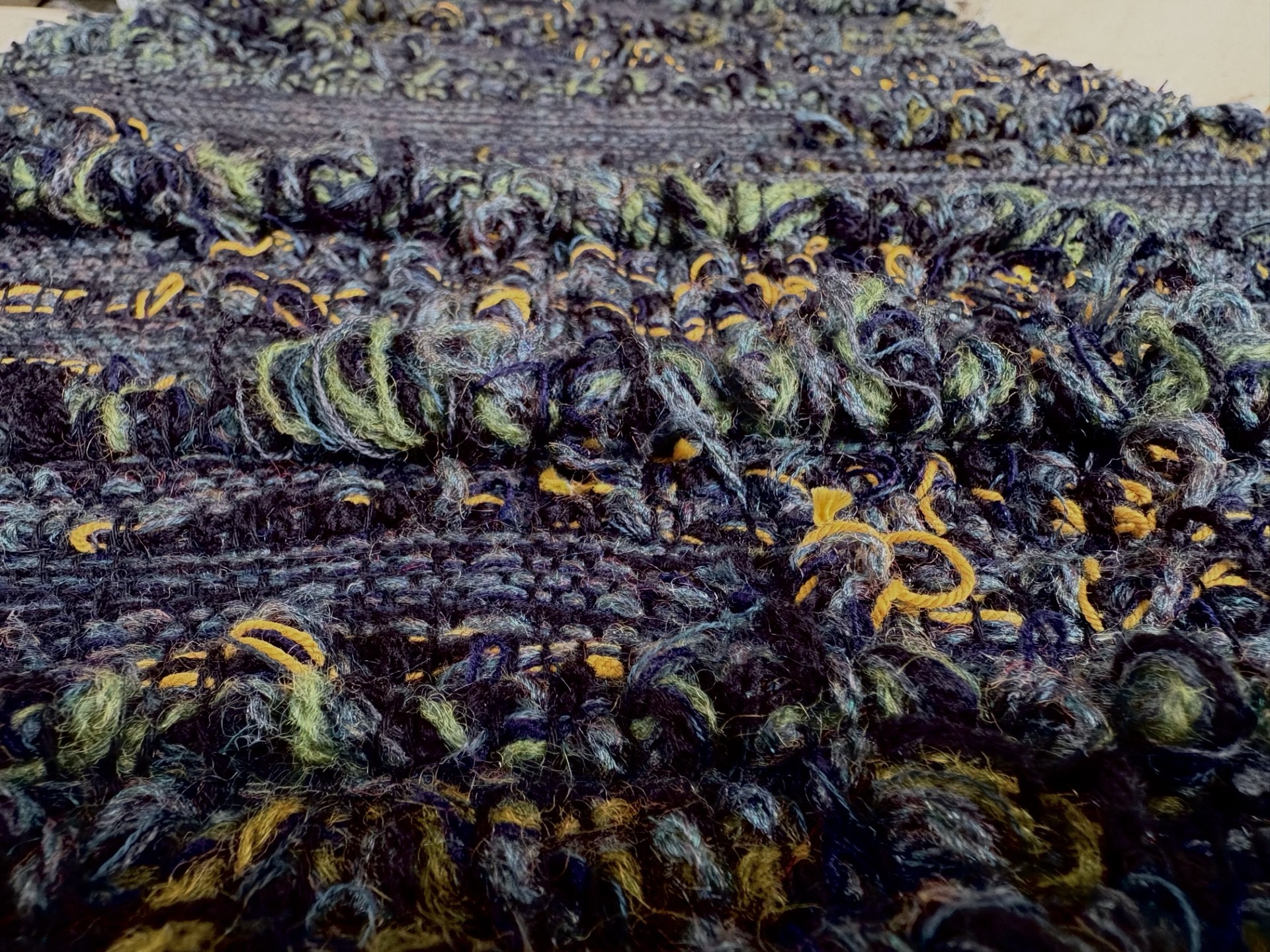 Weaving rhythms allows her to slow down, remember the little things, keep memories alive which connect her to place as her thoughts are captured and woven within the layers of fibres, with a strong grounding connection involving calmness, time and process.