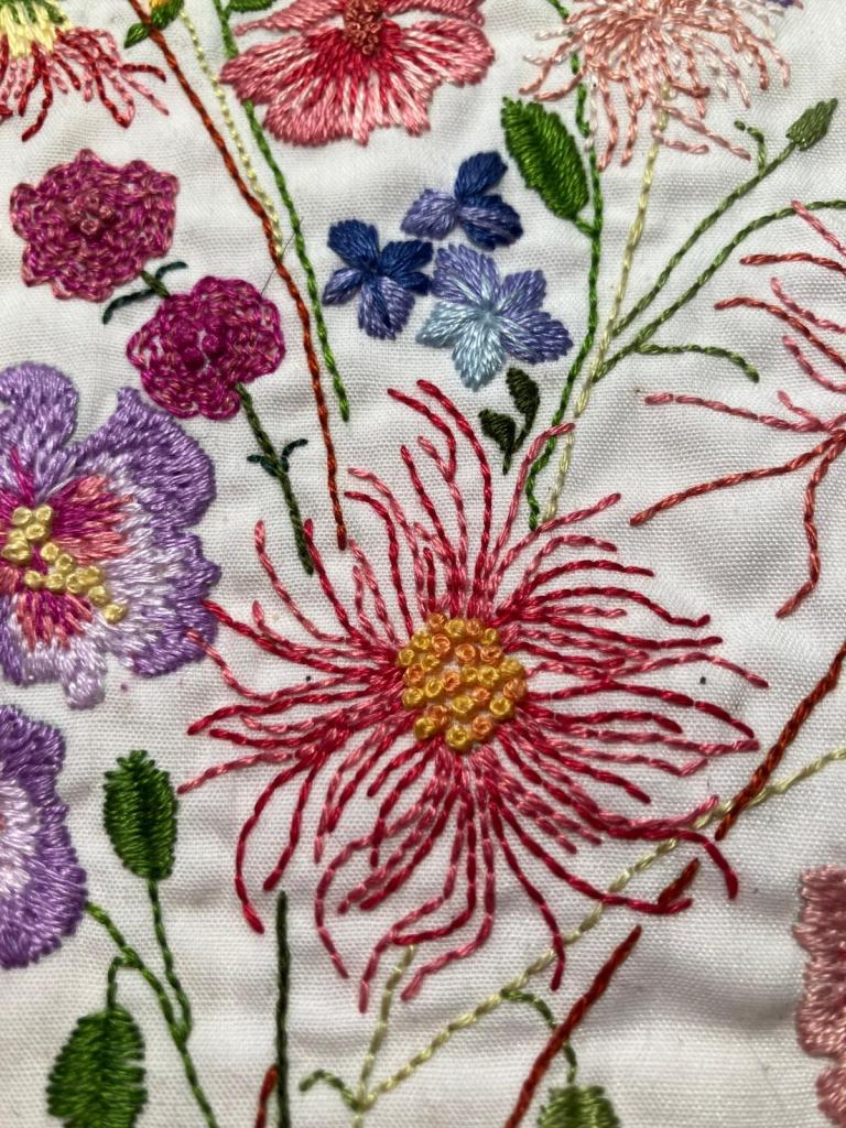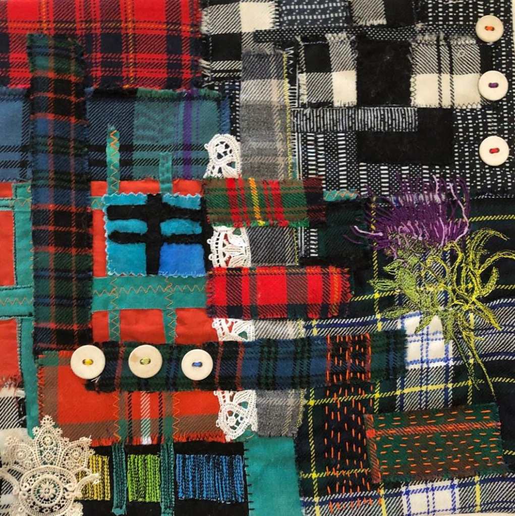 Out of the Fold are sad to say farewell to Caroline Brown who has moved to Surrey. Caroline joined the group in 2011 and over the many years as a member produced some fabulous work for exhibitions. Always highly creative and ambitious, with bold use of colour, quirky subjects, and often using vintage fabrics from her collection amassed over several decades.