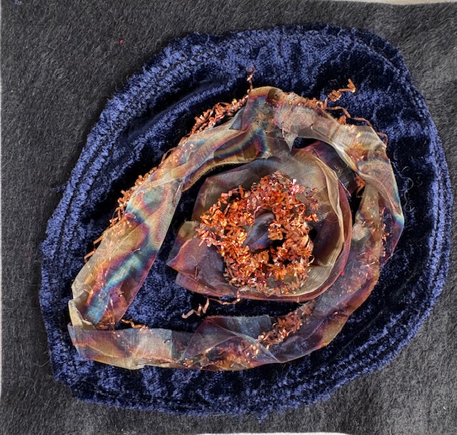 Metal has many of the qualities of textiles. It can be woven, coloured, shaped and stitched. I use metal from very fine gold leaf to hard copper, copper, brass and stainless-steel mesh and wires.