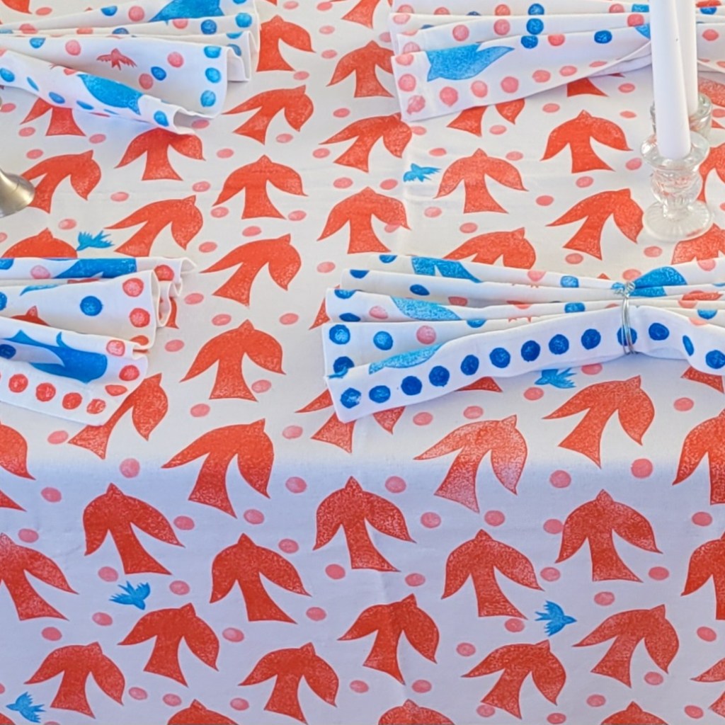 Sarah states that she love expressing herself creatively, it helps her to pause and think through issues she faces. She uses art to connect with herself and life around her. Through the mediums of hand embroidery, printmaking and applique she applies bold colour and shape to explore life issues. Over the last few years, Sarah has been exploring the technique of Swedish Weaving hand embroidery; pushing its boundaries and uses.